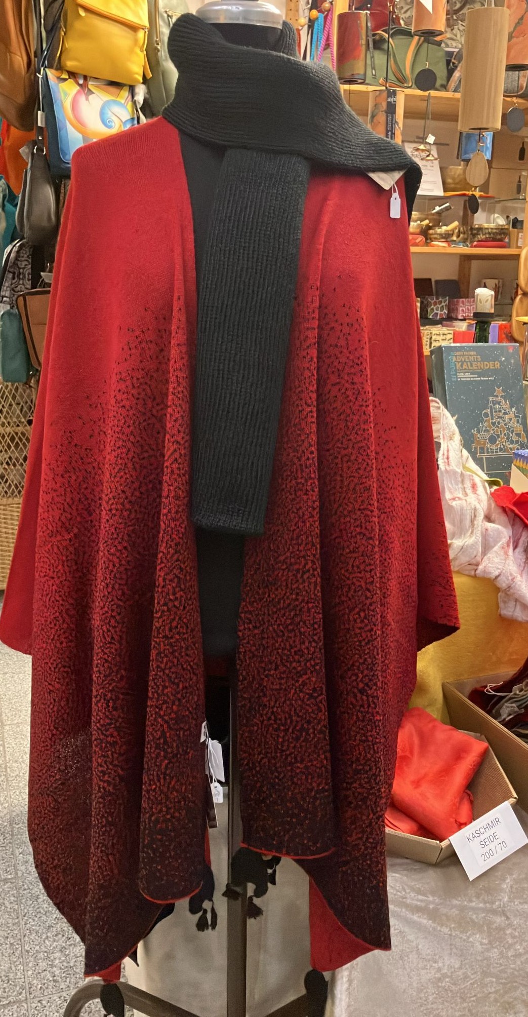 Decken und Schals in vier verschiedenen Größen und in vielen Farben.